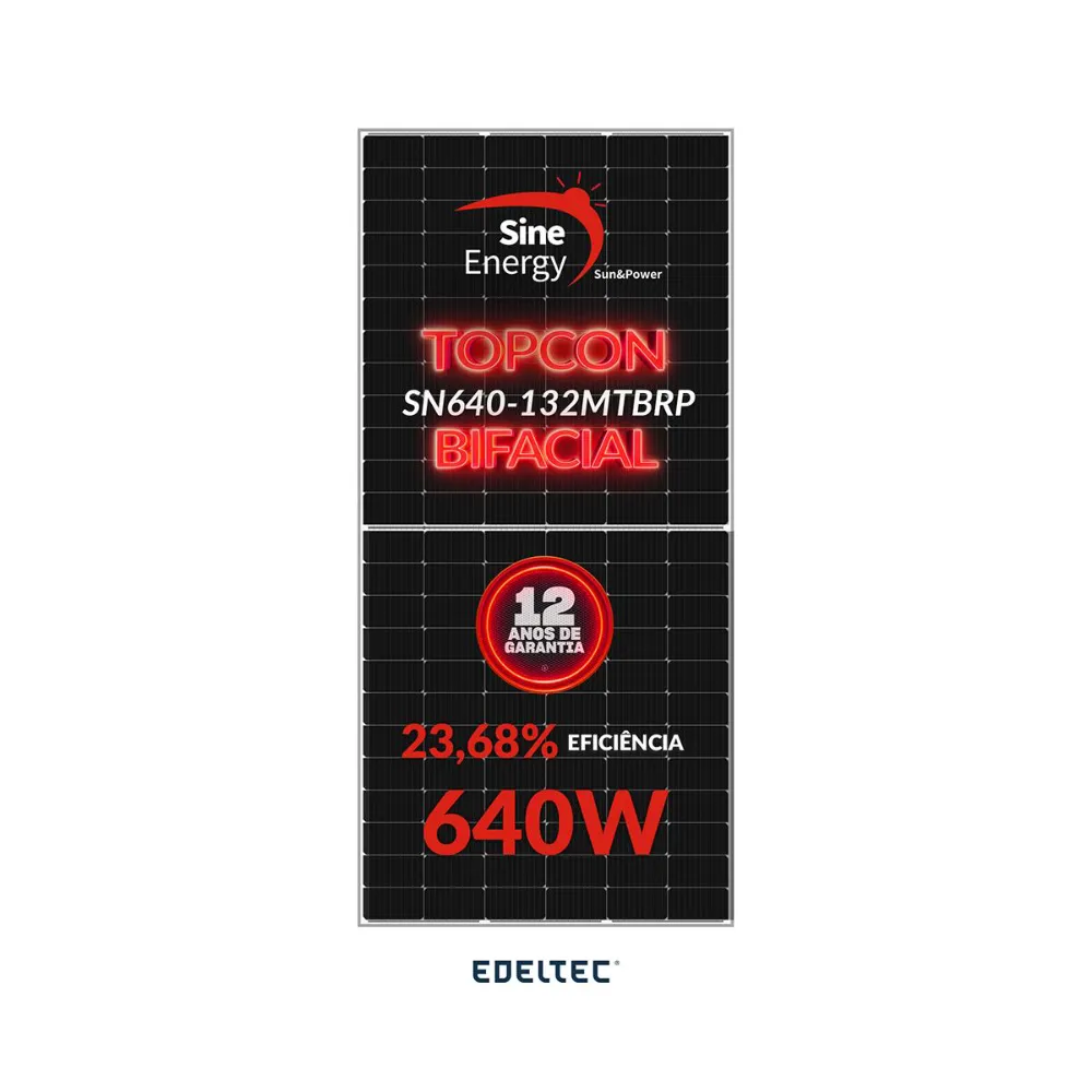 Modulo solar sine energy 640w sn-640-132mtbrp 132 cells topcon bifacial black frame - 740 un/cntr